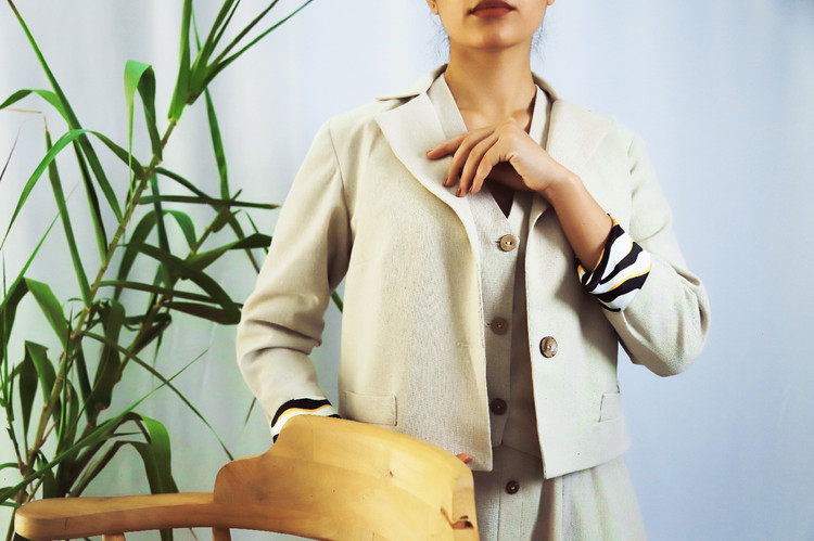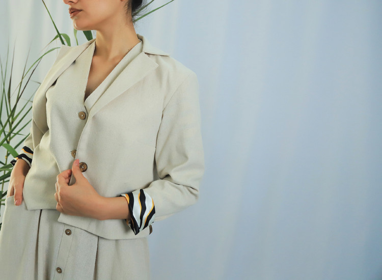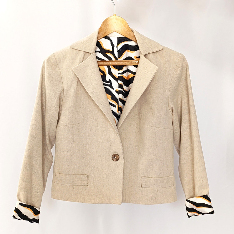 کت کوتاه لینن نچرال با آستر ساتن ببری از کالکشن ببر هیرکانی صنوبر
