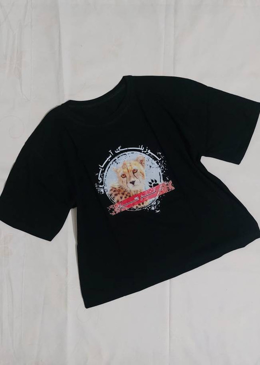 تی شرت کراپ طرح یوزپلنگ آسیایی (فارسی) مدل آستین کوتاه