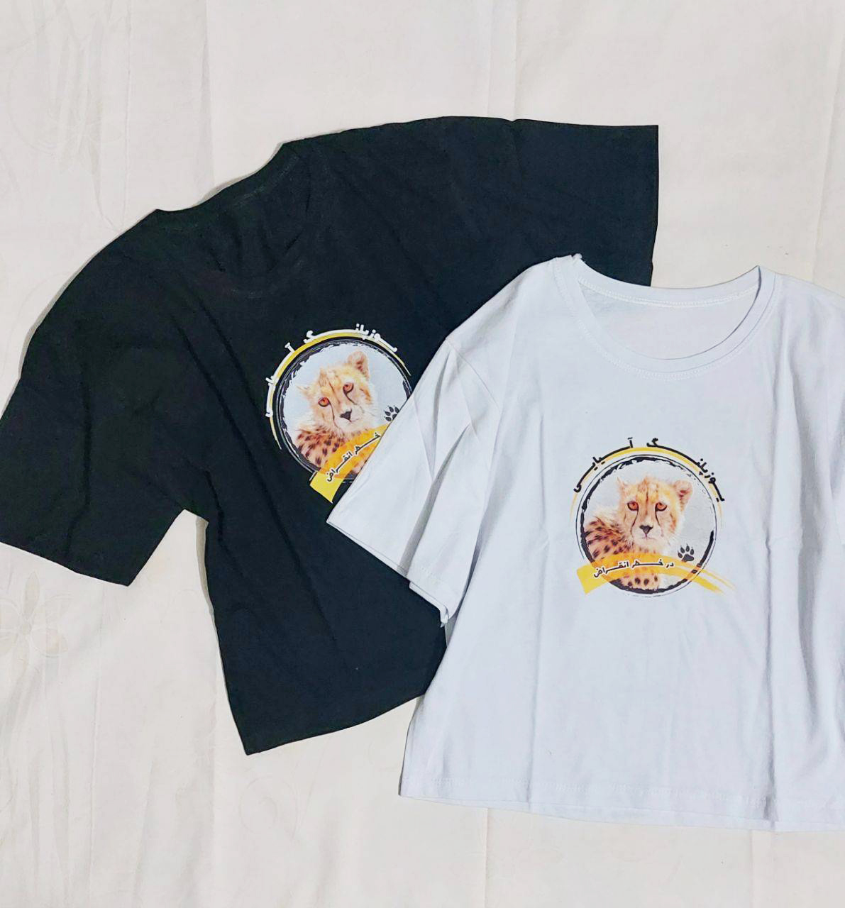 تی شرت کراپ طرح یوزپلنگ آسیایی (فارسی) رنگ زرد مدل آستین کوتاه