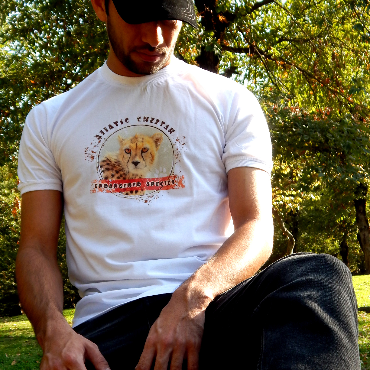 تی شرت طرح یوزپلنگ آسیایی (انگلیسی) تکست قرمز مدل آستین کوتاه