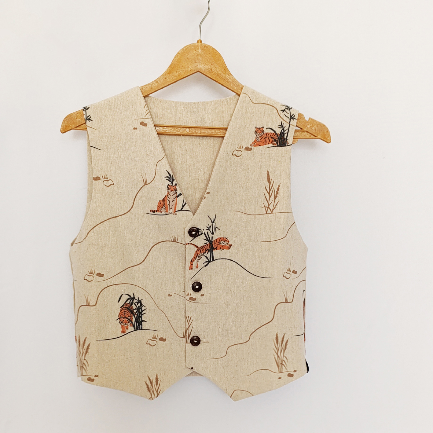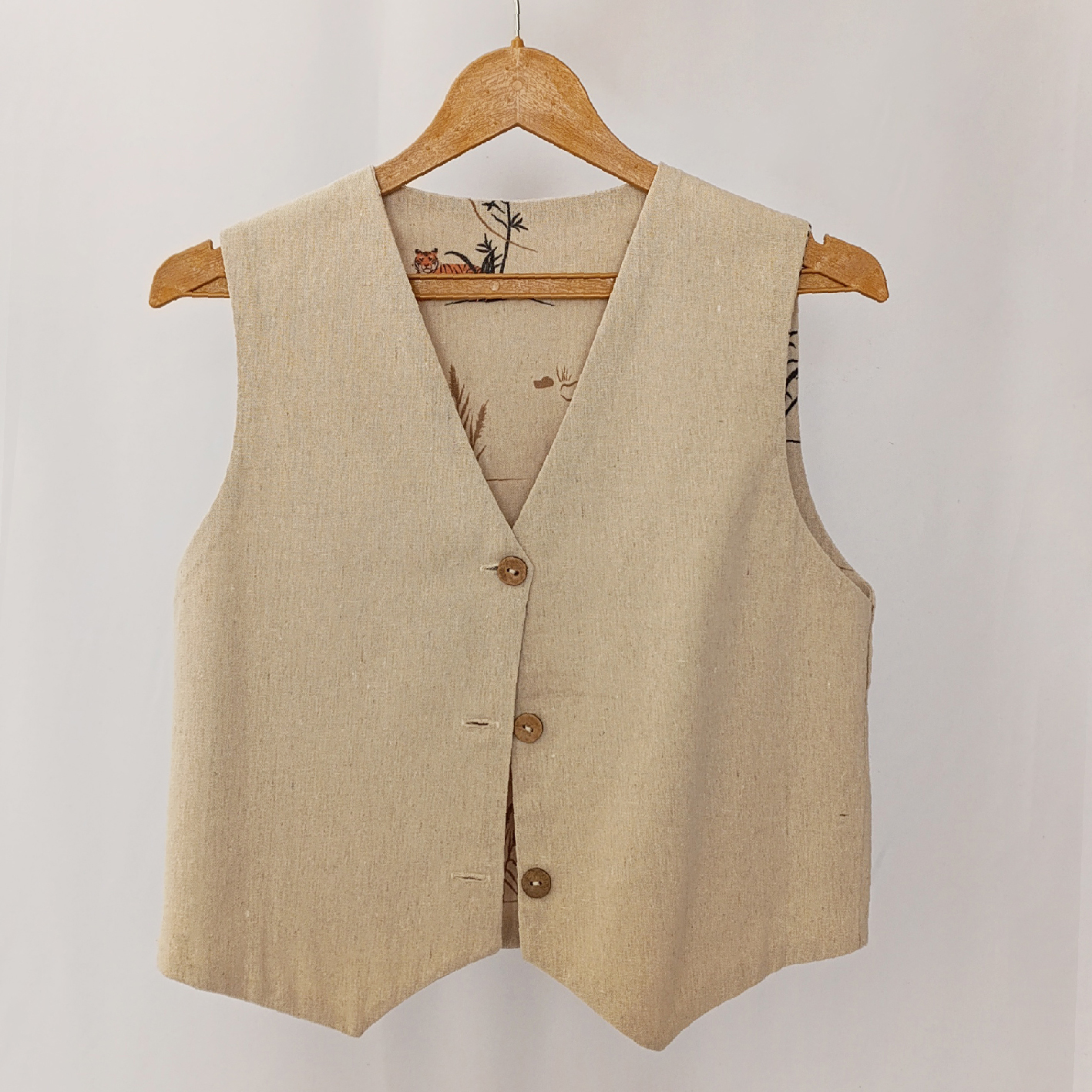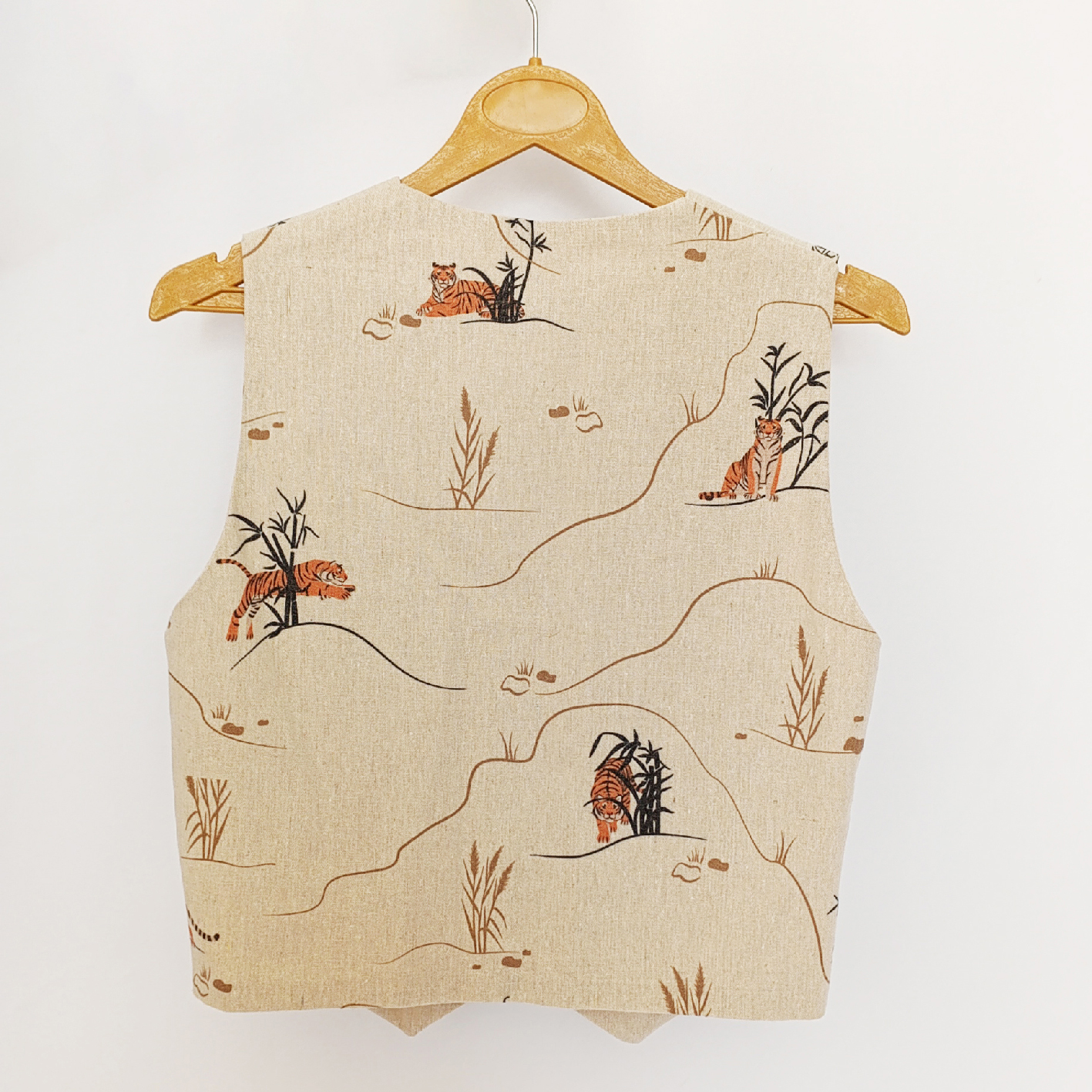 جلیقه دو رو لینن نچرال صنوبر با طرح بیشه از کالکشن ببر هیرکانی